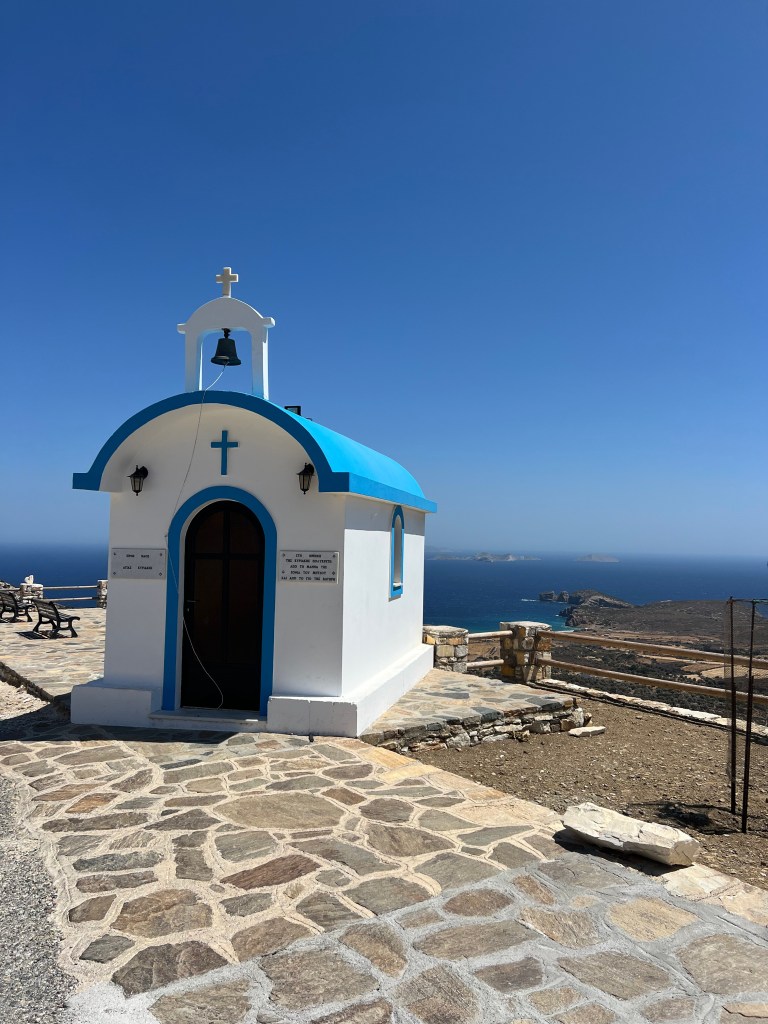Our rental car was delivered to the hotel, and we set off toward the mountains. First stop: Filoti, where we hiked up to a centuries-old church with sweeping valley views.