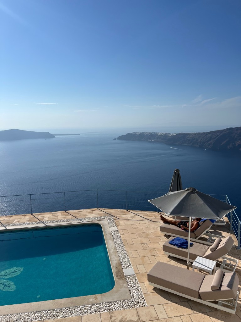After checking in at Absolute Bliss, we grabbed lunch nearby and snacks for the room, then spent the afternoon soaking in the caldera views from the pool.